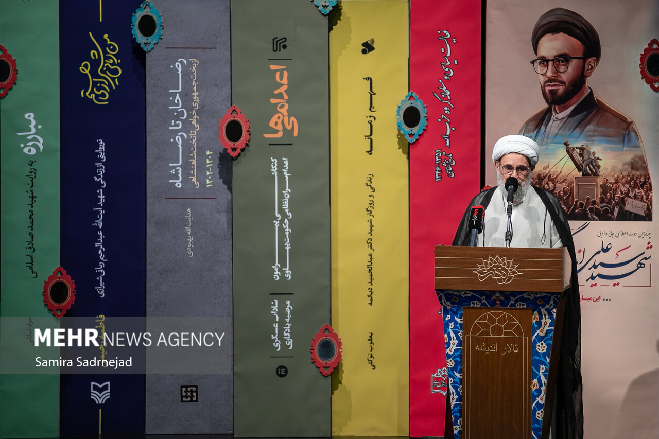 در ابتدای این برنامه میثم نیلی مدیر عامل مجمع ناشران انقلاب اسلامی، گفت: خدا را شکر میکنم به ما توفیق زیستن زیر پرچم لا اله الا الله در این سرزمین پر افتخار و توفیق همعصری با امام خمینی (ره) و امام خامنهای (مدظله العالی) را عطا کرده است. خداوند به برکت حاکمیت ولایت برای ما بابهای جدیدی از جمله باب جهاد و مبارزه با طواغیت عالم را گشوده است و راه شهادت را برای ما باز کرده است.